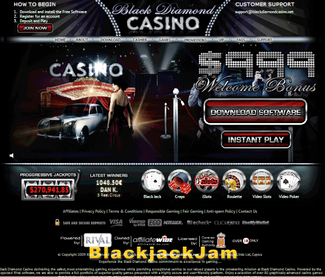 Other Games: Black Diamond Casino offers more than 80 Casino games and Slots Games including Classic Slots, Video Slots, Roulette, Video Poker and Progressive Jackpot games.