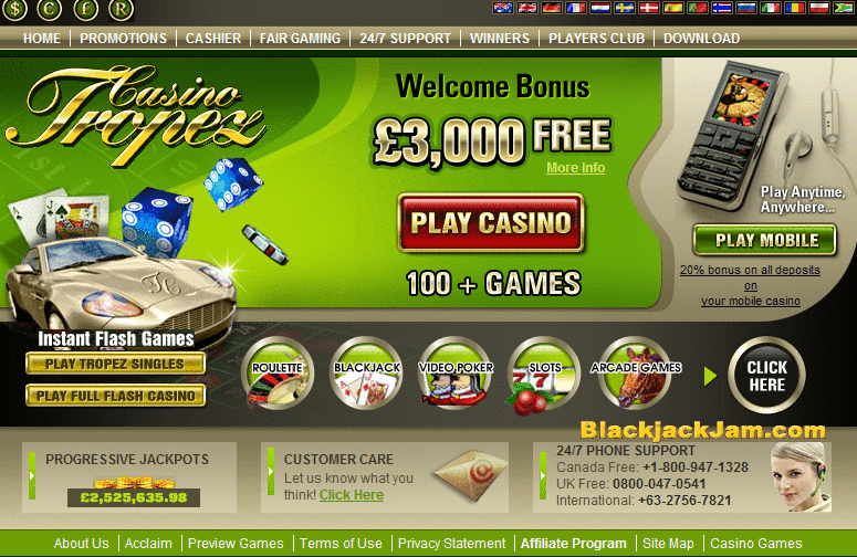 Other Games: Casino Tropez has over 200 games including all types of slot games, card and tables games, high paying video poker games and a full suite of progressives.